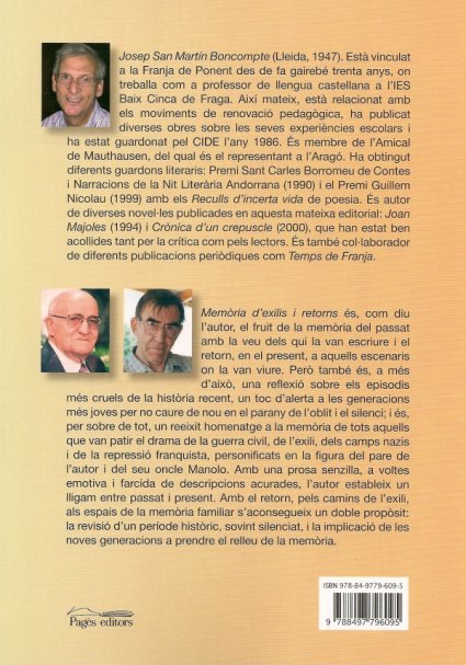 "MEMÒRIA D´EXILIS I RETORNS" és el fruit de la memòria del passat amb la veu dels qui la van escriure i el retorn, en el present, a aquells escenaris on la van viure.